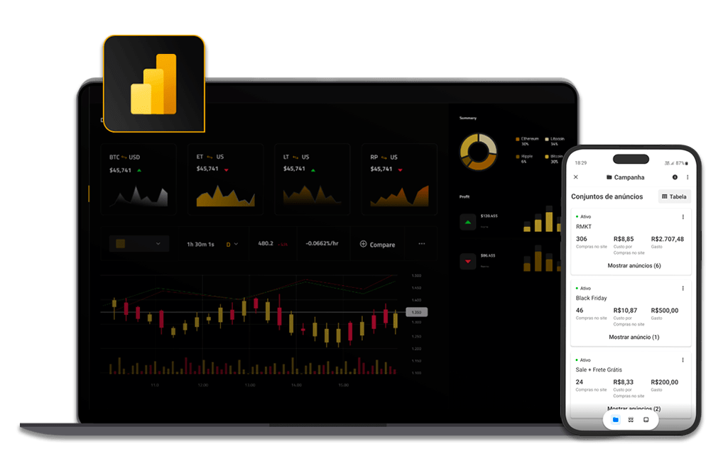 Métricas atualizadas em tempo real no aplicativo ou no gerenciador. Tudo na palma da mão.